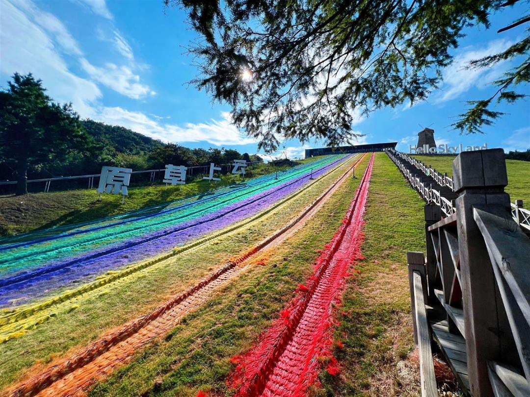 彩虹滑草:色彩斑斓的滑道由多种明亮鲜艳的色彩拼接而成,远远望去,恰似一条绚丽的彩虹从天际飘落,完美镶嵌在翠绿的草原之上。当您坐上滑草器具,从滑道顶端顺势而下,下滑过程中速度逐渐加快,疾风在耳边呼啸而过,带来强烈的速度感与刺激感。此刻,您仿佛化身为自由翱翔的飞鸟,在彩虹般的轨道上肆意驰骋,尽情感受心跳加速的畅快淋漓。这种既刺激又安全的体验,深受各个年龄段游客的喜爱。