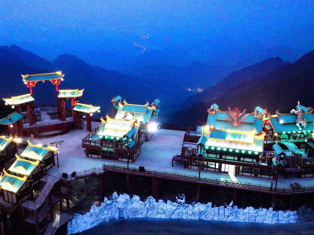 仙侠镇夜游:当夜幕降临云上草原之巅,云上草原仙侠镇便褪去白日的喧嚣,披上神秘的面纱,化身为一个如梦似幻的夜间仙侠幻境。沉浸奇幻玄妙之夜,在星空与云海的怀抱中,仙侠镇灯火璀璨。您将沉浸式踏入一个光影交织的奇幻世界,仙雾缭绕间,亭台楼阁若隐若现,仿佛置身真正的仙界画卷。沉没式互动体验在夜色中更添神秘,与精心装扮的真人NPC邂逅互动。参与扣人心弦的仙界闯关任务,每一步都可能触发意想不到的仙缘奇遇。国风国潮的云海仙市在夜色中焕发别样生机。漫步其间,古韵霓虹交相辉映,特色小铺琳琅满目,感受灯火阑珊处的烟火气与仙侠风情的完美融合。它不仅是游乐的盛宴,更是在高山之巅、云海之间,对“见鹿者得福报、守青山即修仙’这一东方哲思的浪漫诠释。灯火与星河辉映,仙镇与青山共融,生动演绎着“绿水青山就是金山银山”的动人画卷。