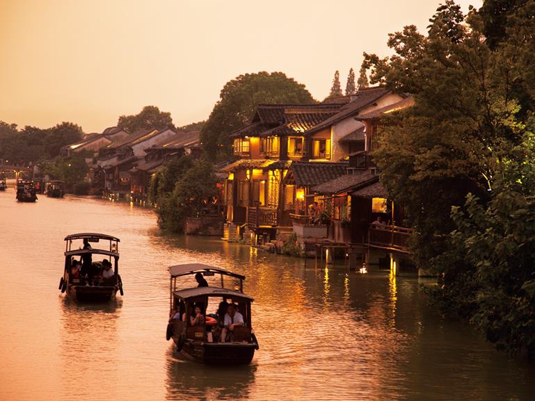 街头巷尾的咖啡馆、酒吧,充满了文艺情怀,乘摇橹夜游西栅是最值得推荐的体验,灯影桨声里的江南水乡分外迷人。