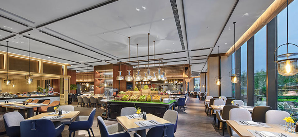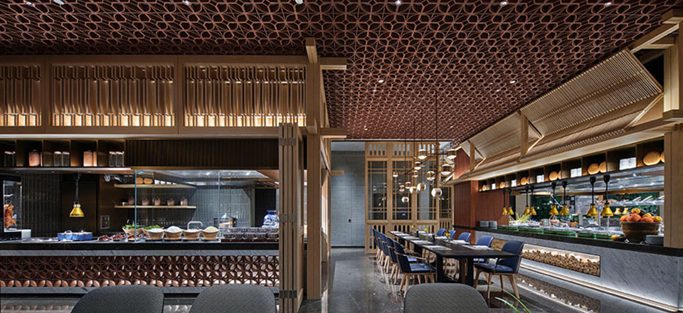 酒店坐落于东莞四大商圈之间,室内设计汲取可园精髓