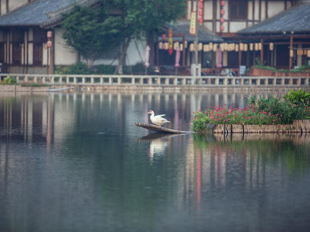 清水如碧,亭台楼阁,如同穿越