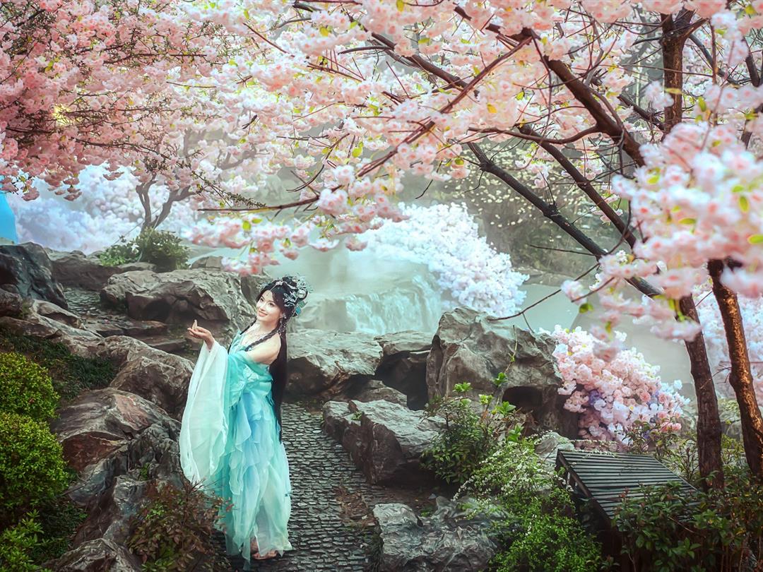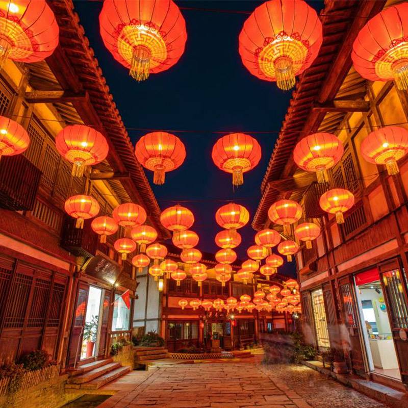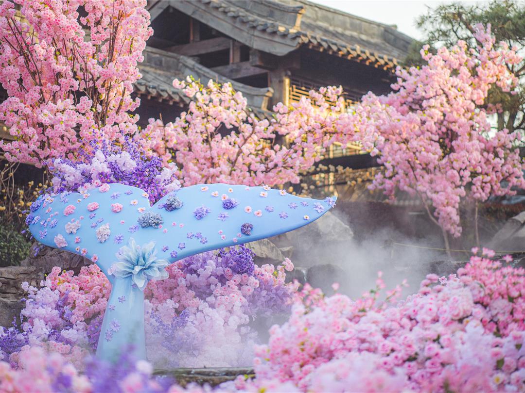 夜晚,灯笼高悬、仙气缥缈,如梦似幻
