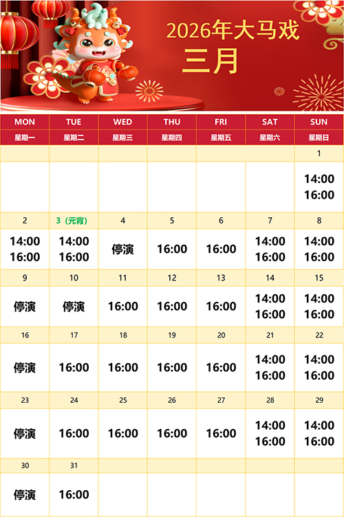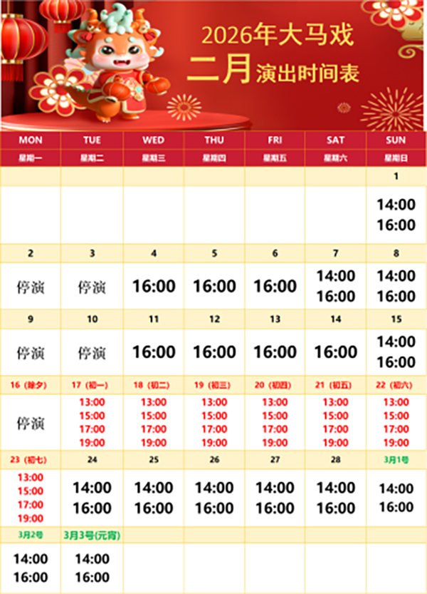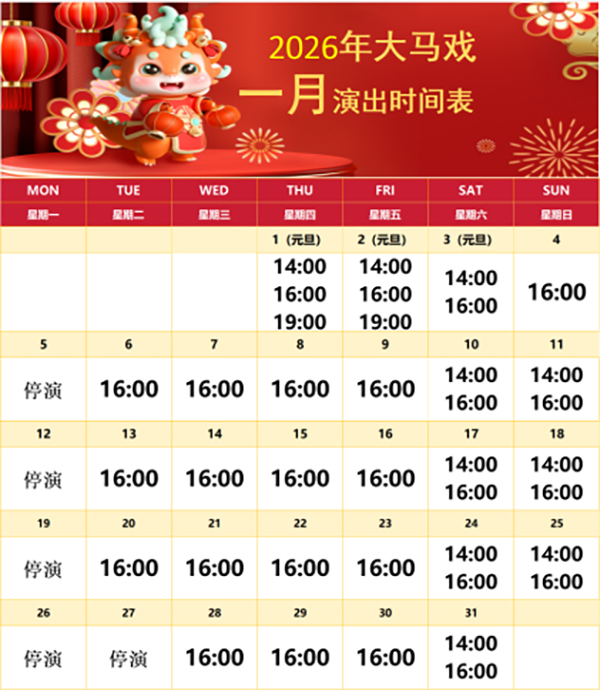 全年 10:00-20:00开放,具体演出时间以景区当天公布为准。