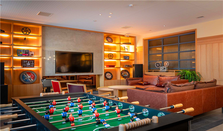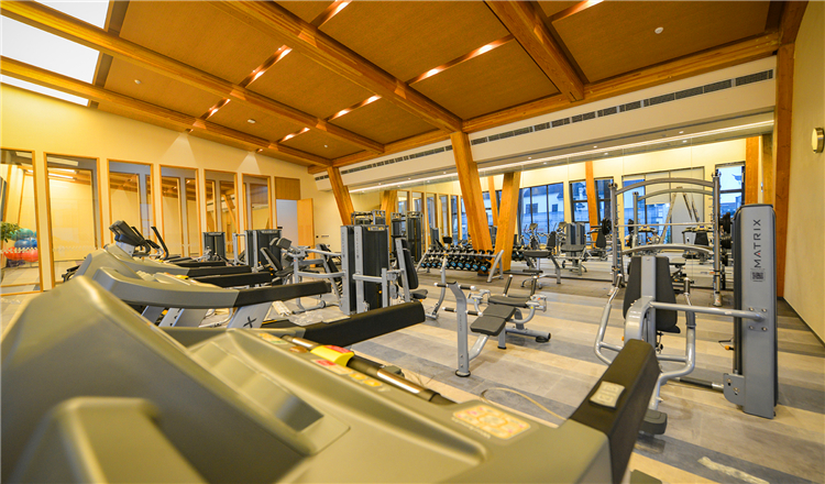 全木质结构的康体中心是酒店的特色建筑之一,分为健身房与游泳池两大区域。