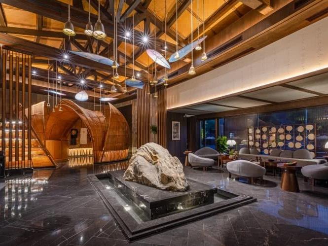 酒店大堂更是极具特色,在大幅水墨风格的点缀下,整个大堂尽显国风的恢宏大气与典雅肃穆。