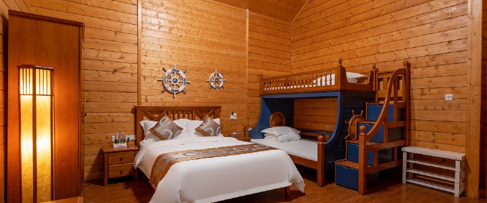 四房两厅私家温泉木屋别墅;多张床;宽1.5米