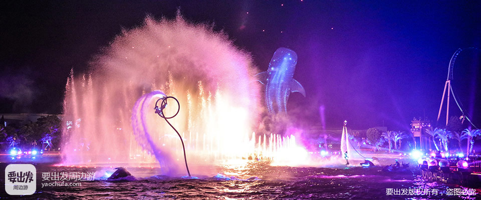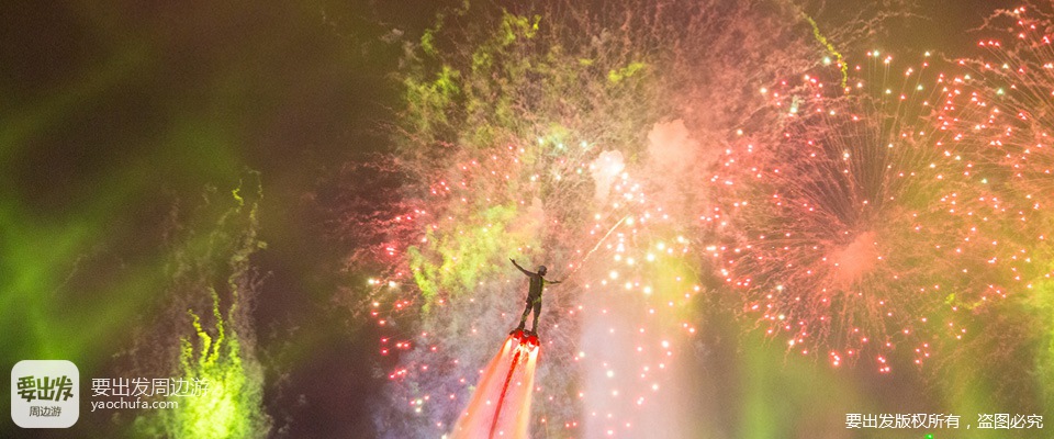 5、每晚的大型“烟花星闪幻彩show”,集闪烁的烟花、激情的音响、动感的喷泉、惊险的水上飞人于一身。