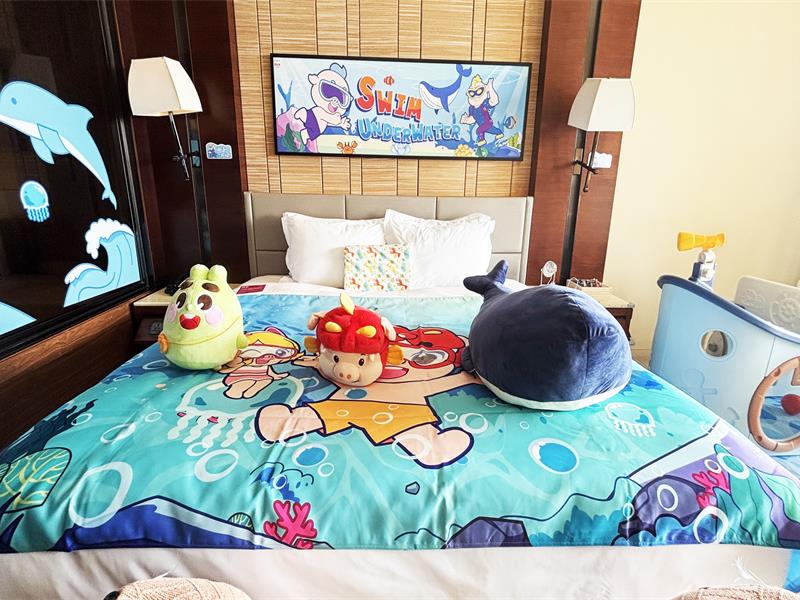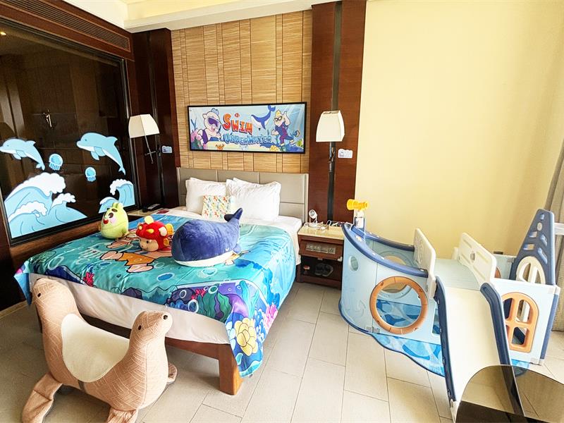 猪猪侠海洋主题房、巴啦啦小魔仙主题房,让你的旅途趣味横生,多姿多彩,房间内的小玩具、小滑梯让你享受足不出户也能遛娃!