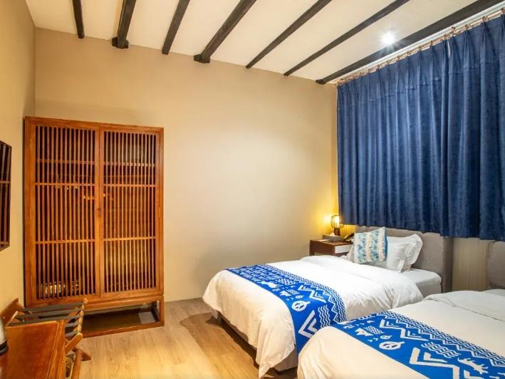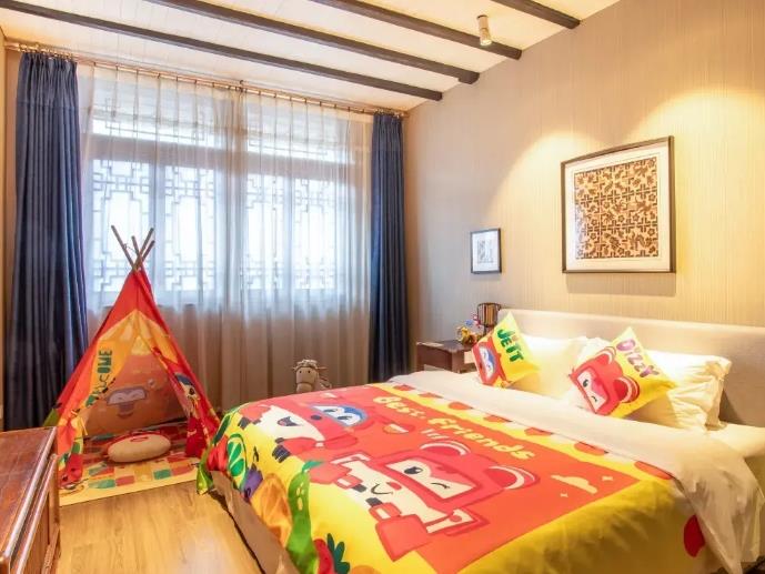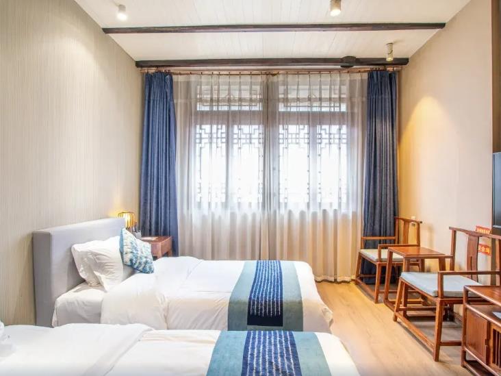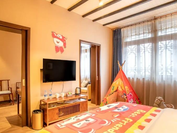 客栈拥有28间客房,涵盖商务大床房、商务双床房、商务套房及亲子主题房(如酷芽·超级飞侠套房大床房)等多种房型。商务类客房以木质装修为主,空间宽敞明亮,部分房型配备阳台