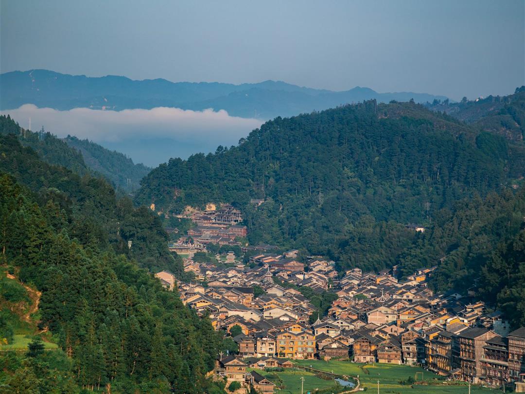 肇兴侗寨位于贵州省黔东南州黎平县,是黔东南侗族地区最美的侗族村寨,是侗族的民俗文化中心。2018年中央电视台春节联欢晚会分会场之一。肇兴侗寨四面环山,寨子建于山中盆地,两条小溪汇成一条小河穿寨而过。寨中房屋为干栏式吊脚楼,鳞次栉比,错落有致,全部用杉木建造,硬山顶覆小青瓦,古朴实用。肇兴侗寨分内姓外姓,对外全为陆姓侗族,分为五大房族,分居五个自然片区,当地称之为"团"。分为仁团、义团、礼团、智团、信团五团。是全国zui大的侗族村寨之一,素有"侗乡第1寨"之美誉。