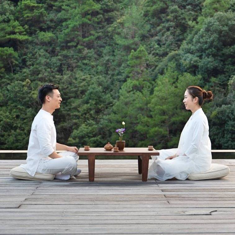 等到阳光明媚、温度适宜时,可以在酒店临湖水月池进行冥想或色彩能量瑜伽。
