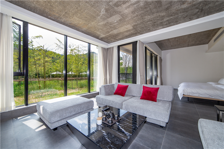 它的每一栋建筑,都像是被"种"在了大自然里。面积近10万平米,仅设46套房,与世无争的安宁与私密,让每一个到来的城市人,都能足够的缓释与放松。
