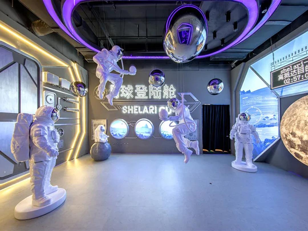 暗黑色系的光线,坑洼不平的月球表面,点点星光在其中闪烁,仿佛置身深邃迷幻的外太空。