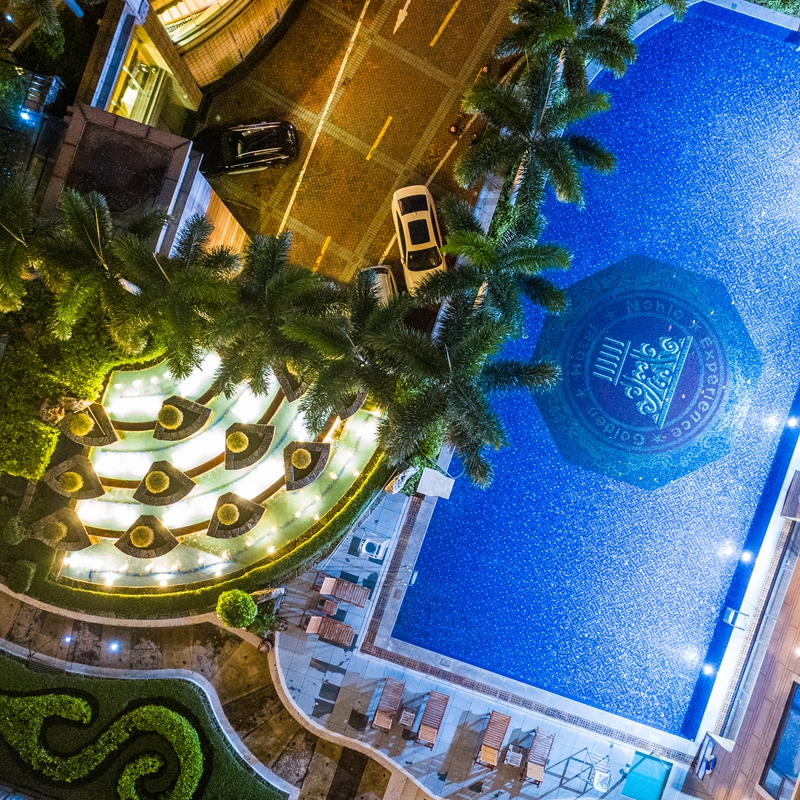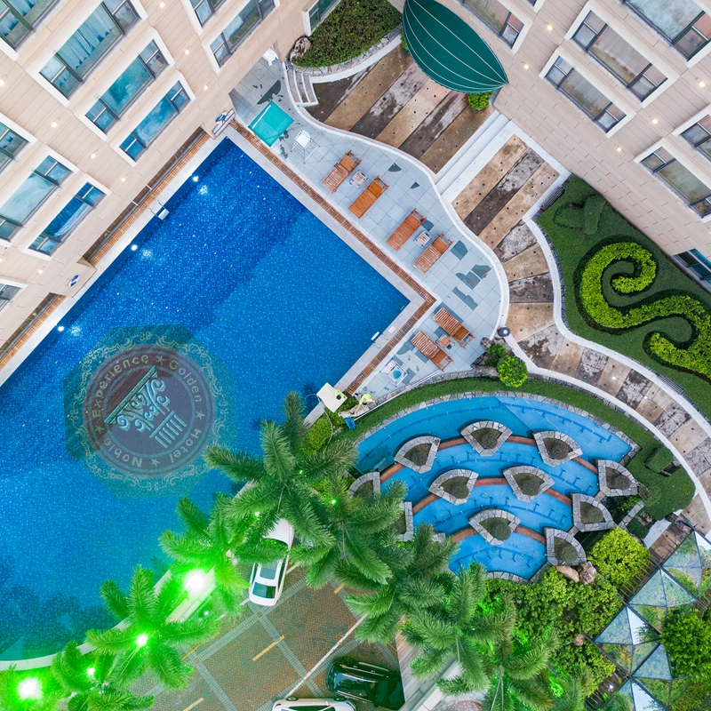 环境优雅的室外泳池,如花园一般,有躺椅、有椰树,满满的热带风情,盛夏前来可自在畅游玩水战胜暑热。