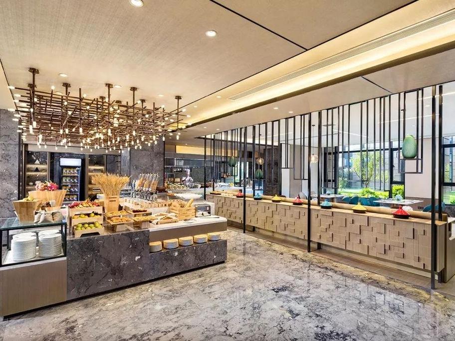 酒店一层的全日制万荟轩餐厅,采用时尚简约的开放式厨房设计,为宾客现场烹饪各式环球美食与本地精选佳肴。