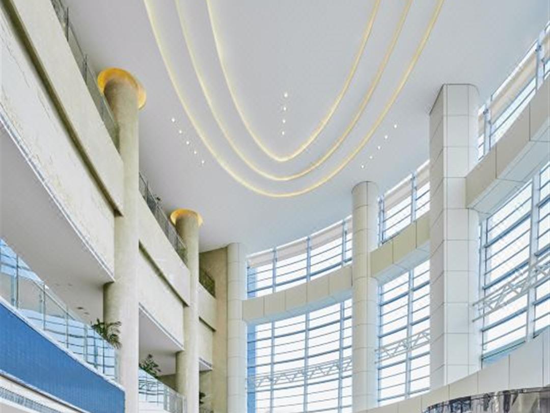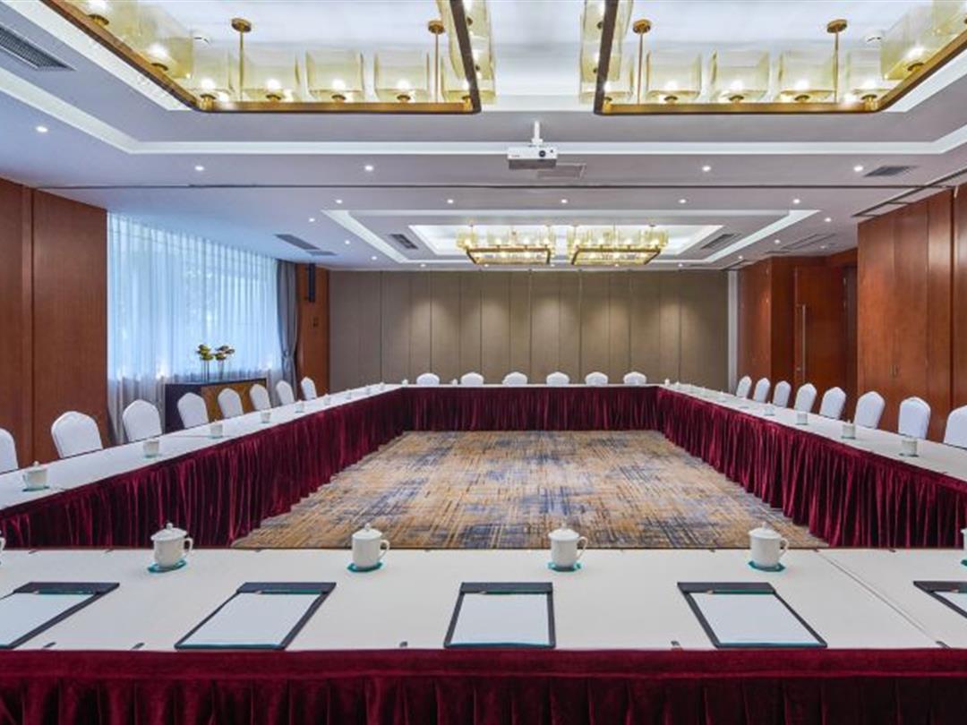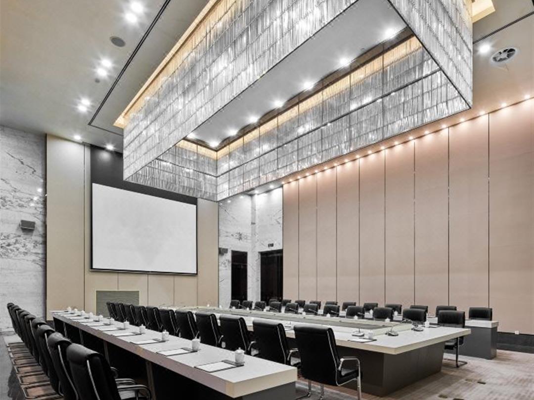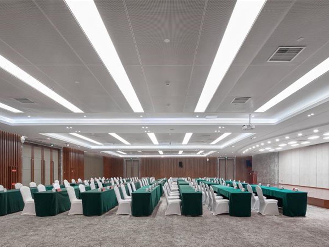 还有多功能会议室、不同大小的宴会厅,空间宽敞明亮,装修大气简洁,天花板流动的线条仿佛是水波纹,灵动又富有韵律,彰显苏州的魅力。