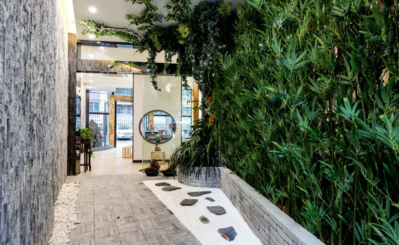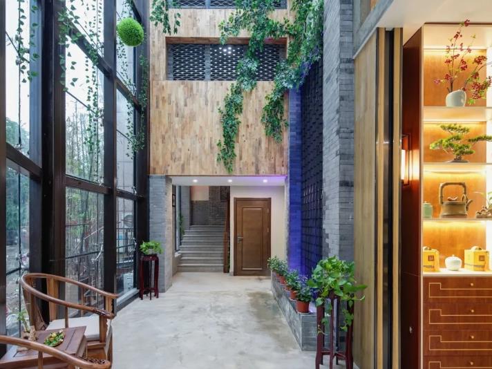 环境雅致:江南庭院风格,四季鲜花与绿植环绕,氛围