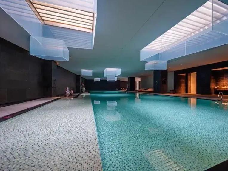 酒店的室内恒温泳池,相当受欢迎。泳池25米长,设计新颖,墙壁由不同灰度的火山岩组成,天花板以方山地形为灵感,水晶打造几个艺术方格天窗,斜垂而下,成为视觉焦点,与右侧玻璃幕墙相辅相成之余,又与水面波光互相交映。