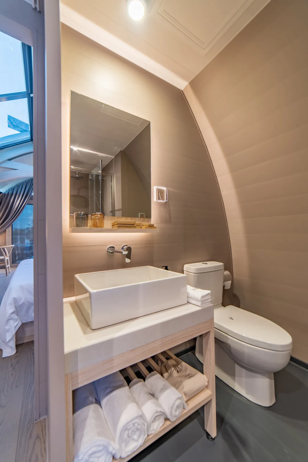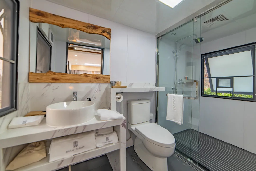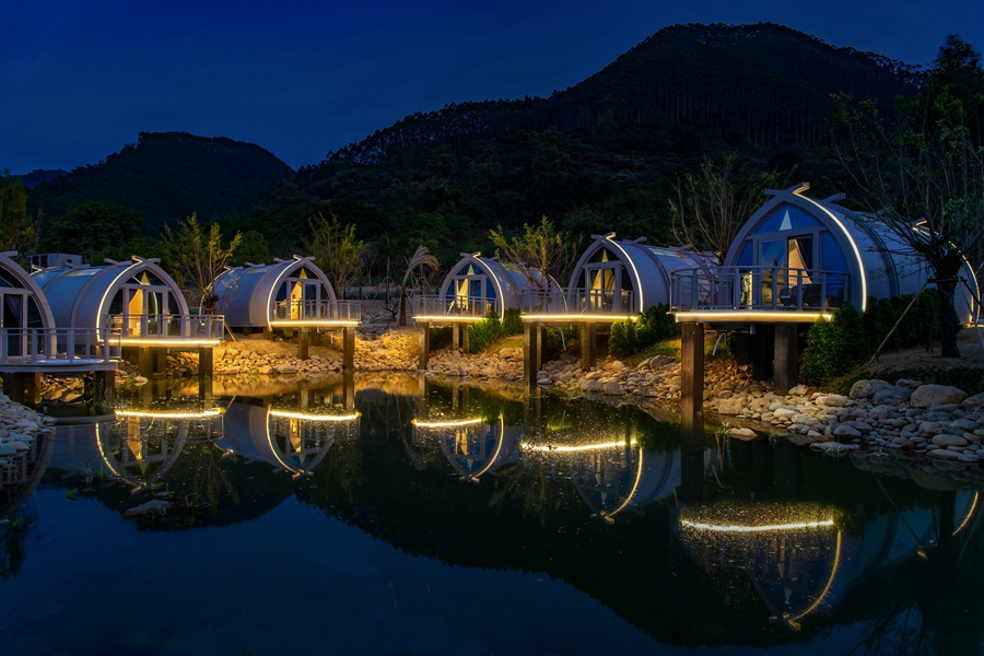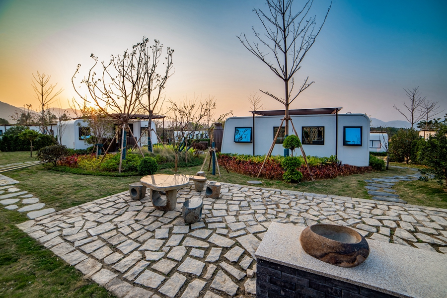 度假村设有5种不同房型,共48间高级客房:天喜(房车)、海后(船屋)、比邻(复式)、大角(合院)等特色房型,每个房间设有“星空之门”,让住客近距离感受星空之美。