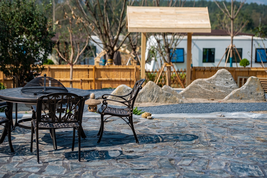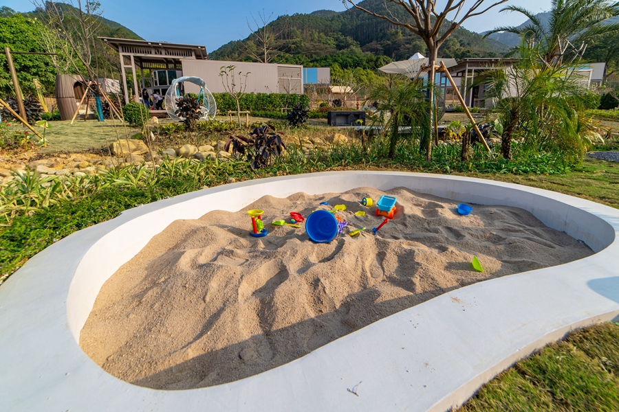 度假村内设有超大庭院城堡、儿童沙池、时光秋千、棋牌室等配套设施,可举办烤全羊篝火音乐晚会、红梅大道赏梅、自然溯溪探险等。