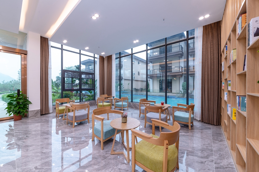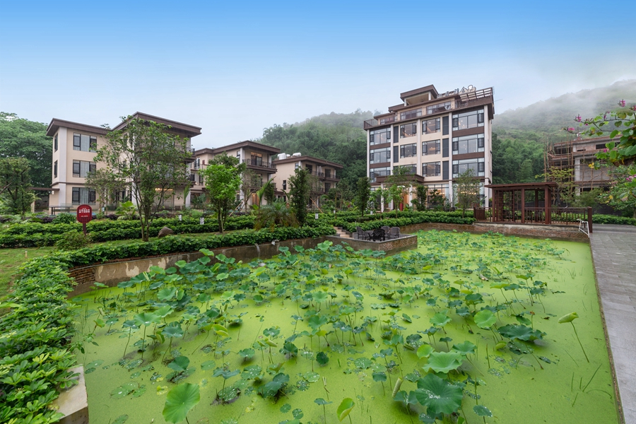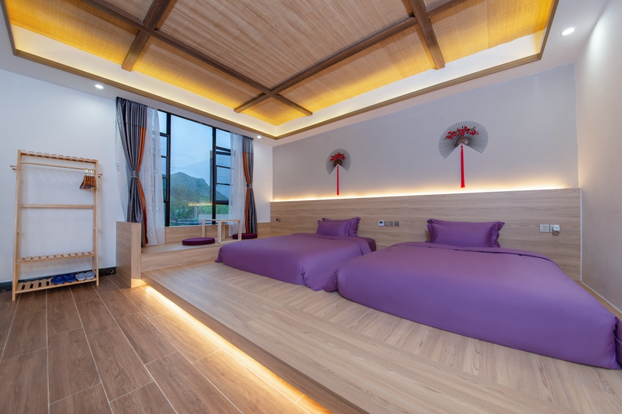 水云雅舍民宿巧妙地将每栋建筑与美景之间各自的特征与气质融合,以大自然的天地灵气,褪去建筑本身的雕琢之感,呈现出精致质朴的美感,不同的风景又为每个房间带了不同的视觉感官。在植物和建筑构筑成的天然视觉屏障的掩映下, 同时具备空间感与私密性。