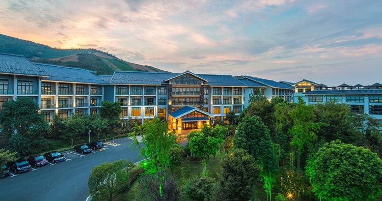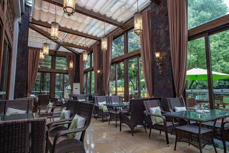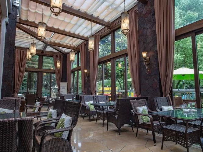 浅灰蓝瓦的屋顶、象牙色的外墙、精致江南的室内设计,酒店彰显了传统的中式江南建筑与现代装饰的完美结合,更与周围幽雅深邃的竹海温泉融为一体。