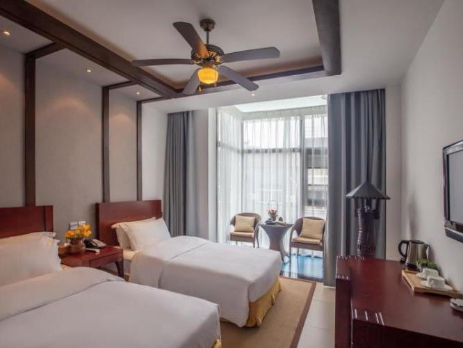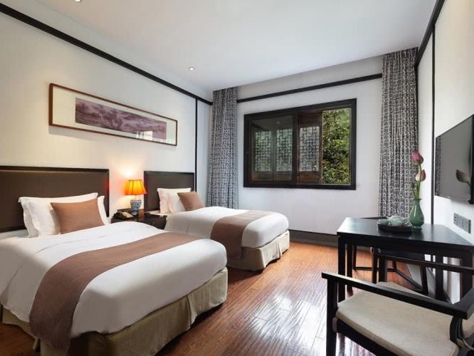 客栈拥有各类竹景客房与套房,客房内的陈设布置取材天然,竹木、绢丝、桑麻等,简约却不简单,巧妙地烘托出了客房的清新雅致。