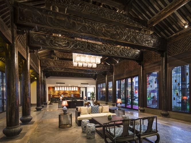古色古香的新中式风格,房间布置天然竹木,绢丝,桑麻,扎染,木雕,看去简单的布置其实低调而奢华。