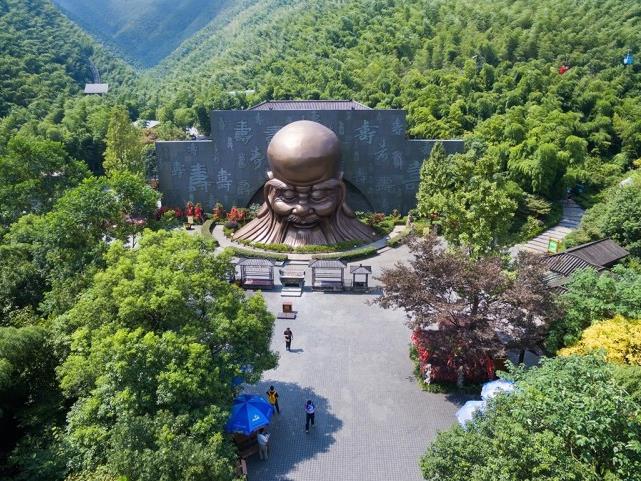 行至竹海半山腰,高12.8米的寿星头像屹立在寿星广场上,南山寿翁慈眉善目,和蔼可亲,两侧的山峰就是寿翁的左膀右臂,向每位来竹海的客人展示当地的长寿文化。