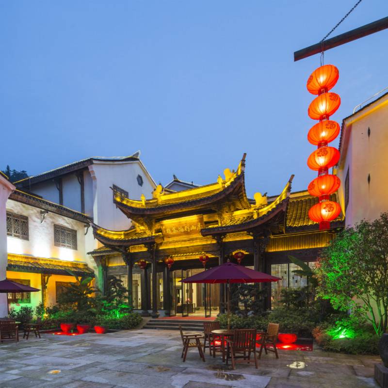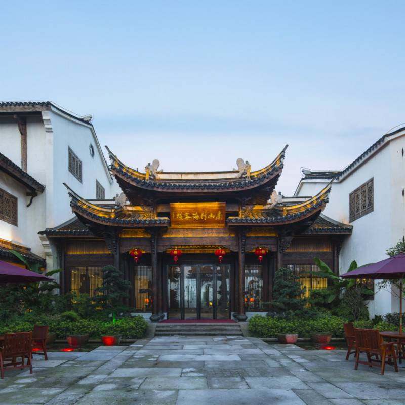 立于万亩竹海脚下的一隅之地,青砖、白墙、黑瓦、溪流,脱离了城市的浮华,宛若陶渊明笔下的世外桃源;这便是南山竹海客栈。客栈往下走5分钟就到御水温泉,往上走5分钟即到南山竹海景区正门,旁边即是南山竹海古街,夜晚大红灯笼亮起来的时候很美。