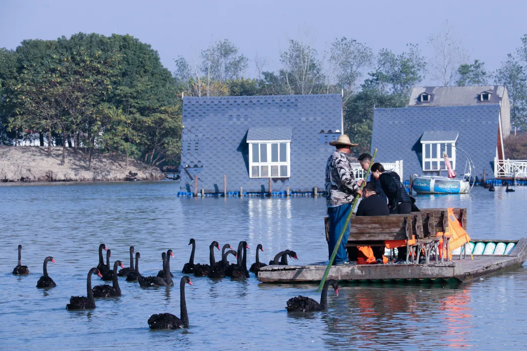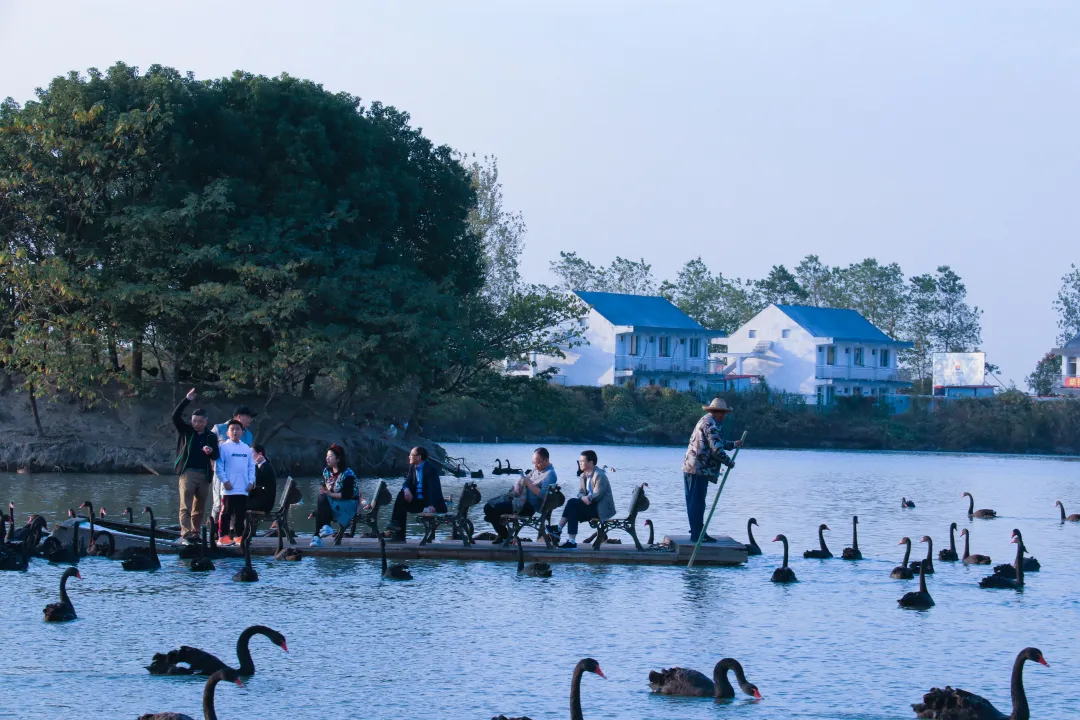 黑天鹅还会环绕在竹筏周围,真是太有趣了