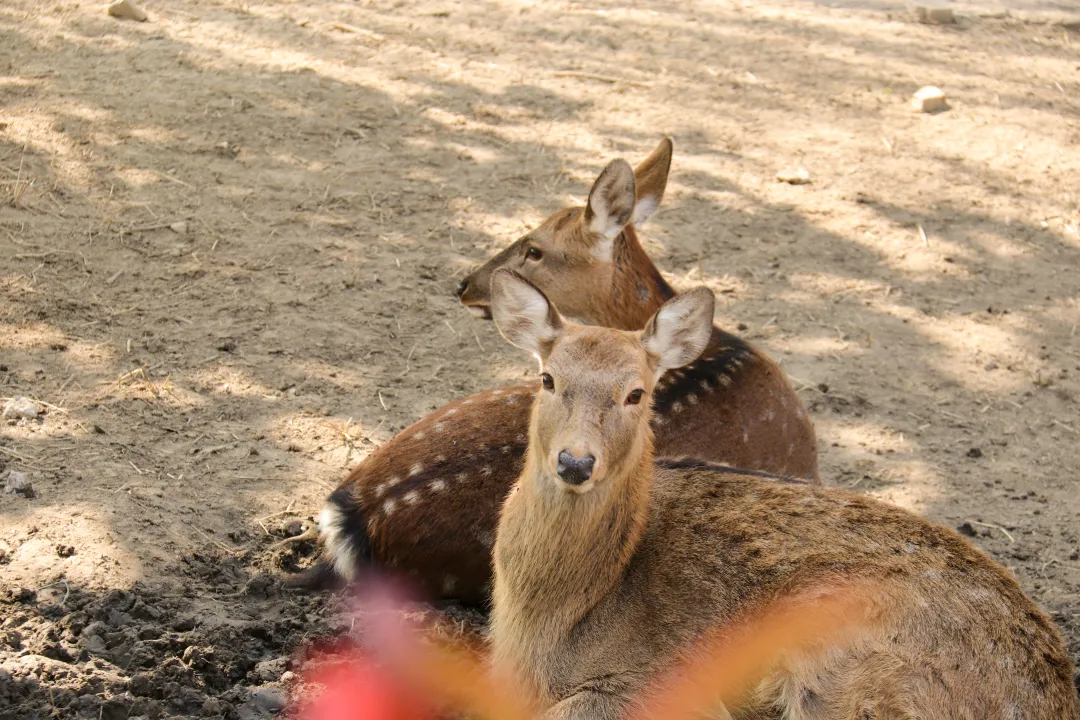 可爱的梅花鹿、美丽的孔雀、淘气的猴子