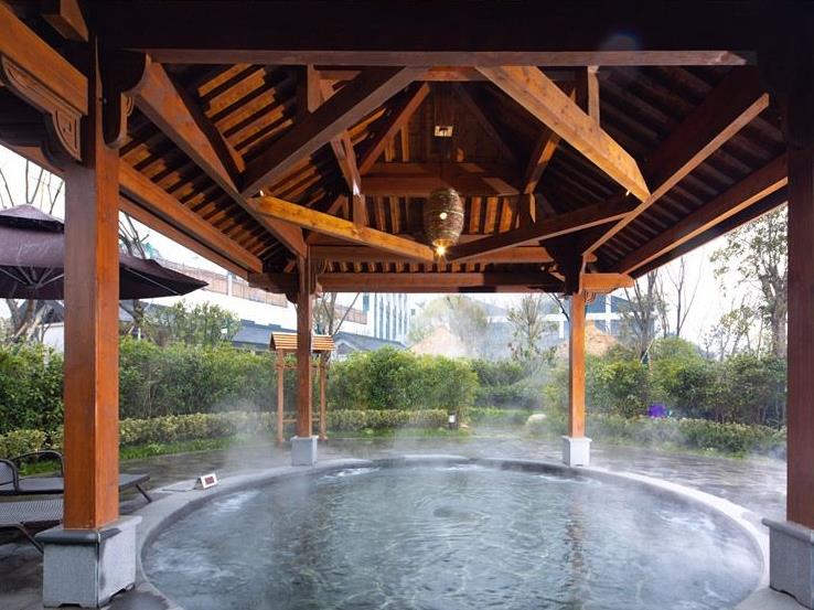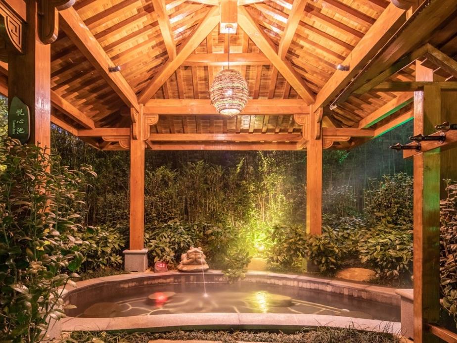 另配置环境优美的SPA按摩包厢10间,豪华装修的休息包厢5间,健身房1间。在休息厅侧边有1间自助餐厅,让各位在泡浴温泉的同时,品味一下水墨田园独树一帜的美食。 水墨田园温泉与周围的“山、水、林、石、田园”等自然元素的完美结合,与“金、木、水、火、土”的阴阳平衡巧妙相吻合,形成了归隐、禅意的独特风格,是养身、养心、怡情的出处。