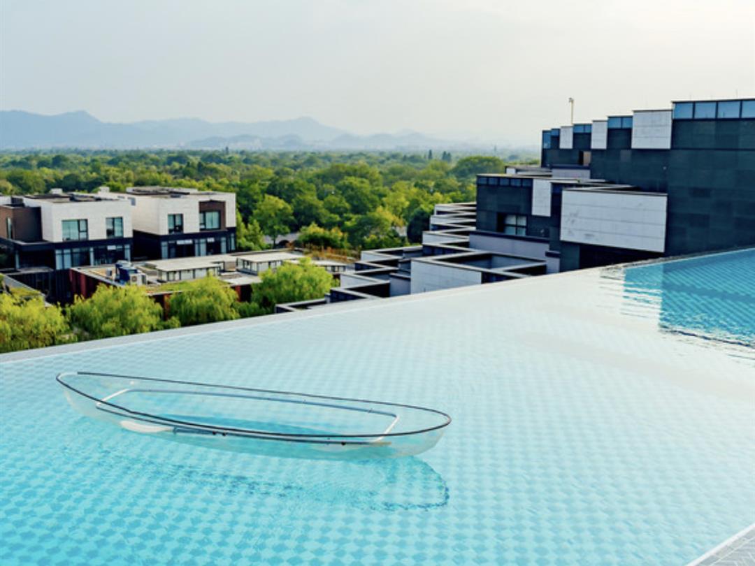 酒店设施融合休闲与文化体验,核心亮点包括:屋顶无边泳池(6月25日至10月中旬开放),可远眺西溪湿地全景;