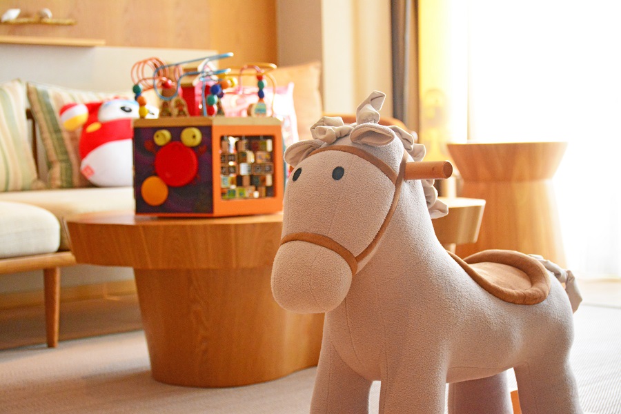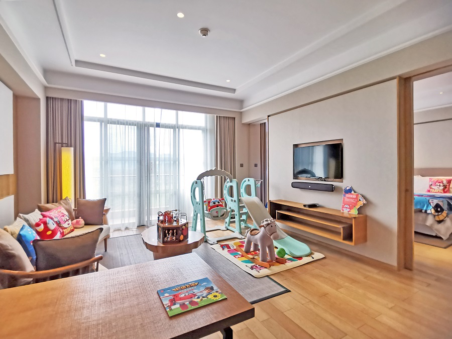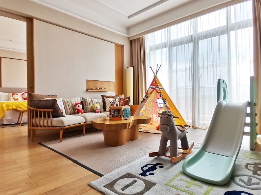 贴心房间布置,让猪猪侠/超级飞侠和萌宝一起安心度假。这里有陪小宝宝玩可爱小木马、滑滑梯、猪猪侠小公仔等各种亲子互动玩具,增进亲子情感。