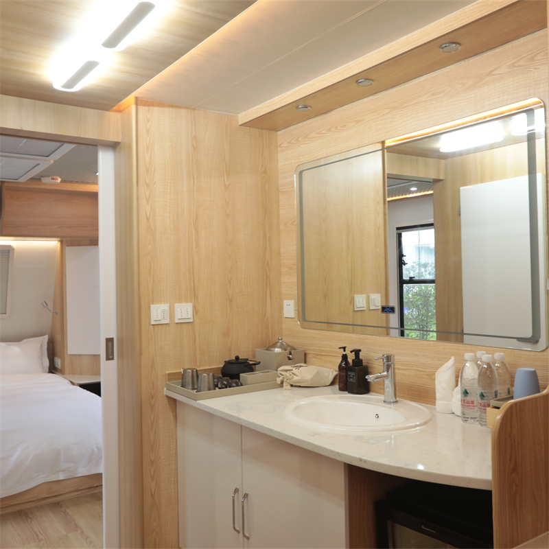 车内分为卧室区、卫生间浴室区、厨房区等基本生活空间