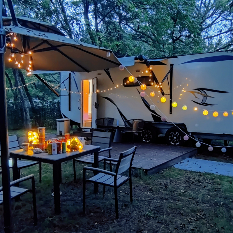 在房车的小院子中