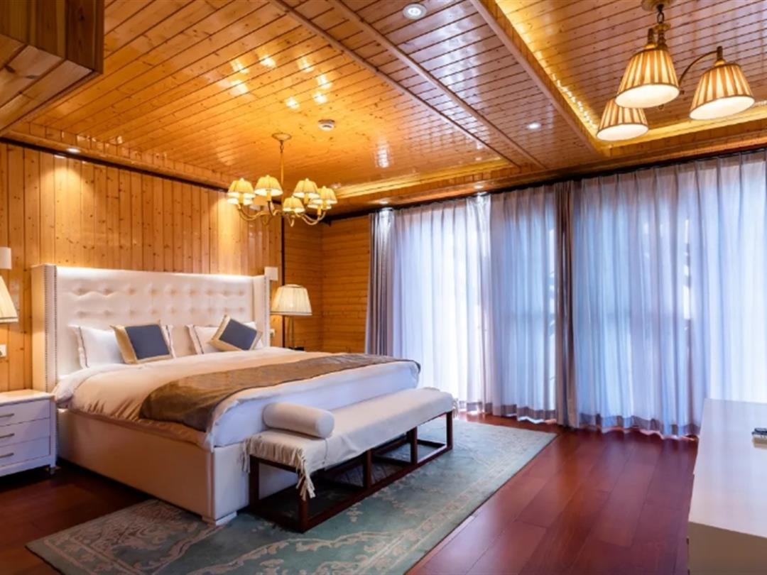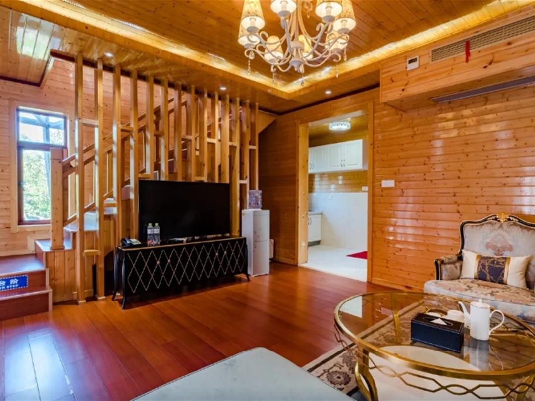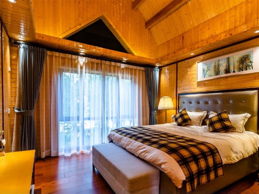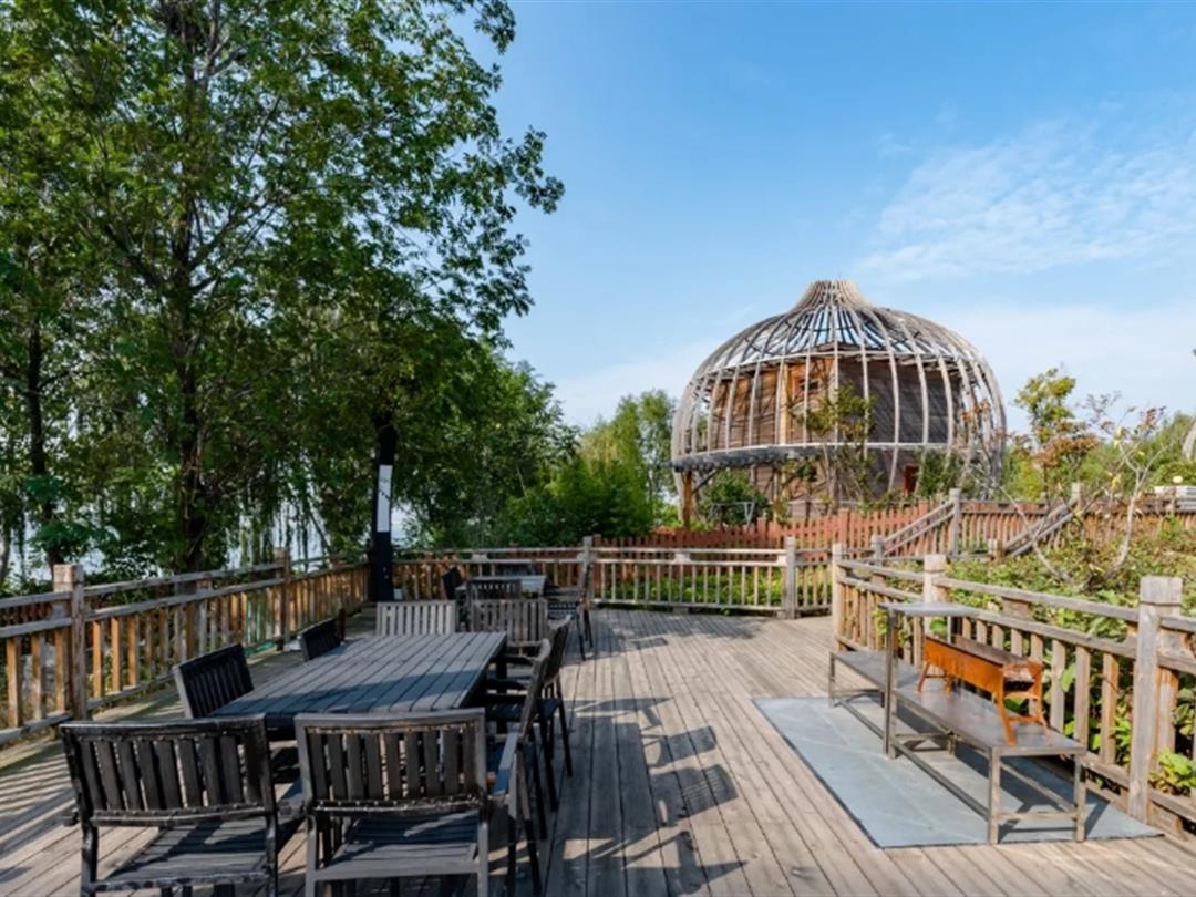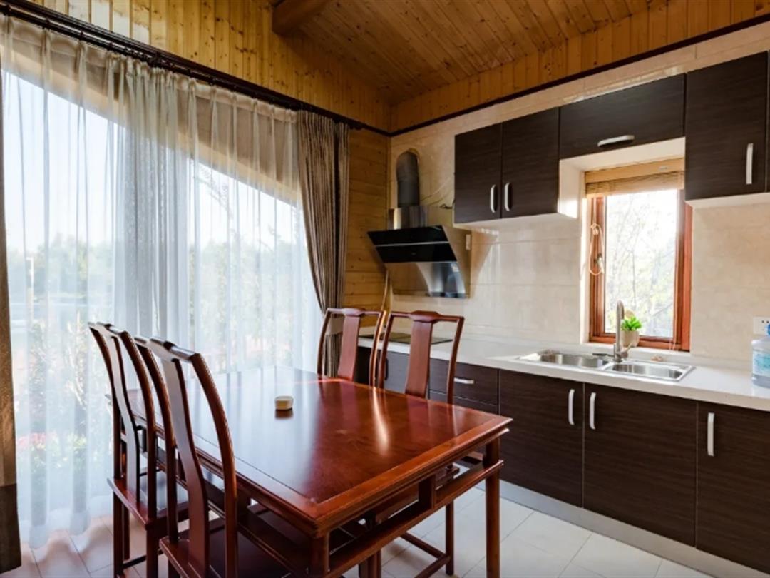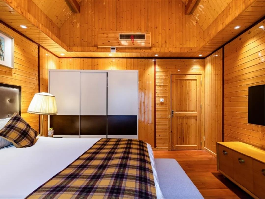 酒店配套设施完善,包含室外游泳池(绿林环绕、清澈见底,夏季可畅游)、免费停车场、收费接机服务、免费宽带及WiFi等基础服务。特色玩乐设施方面,提供湖上游船、烧烤露营等体验,让住客亲近自然; 林荫小路贯穿园区,适合闲庭信步; 酒店餐厅提供健康有机简餐,支持自助烹调与专业厨师手艺,兼顾便捷与品质。此外,木屋周边自然园林与湖景相互映衬,营造出放松身心的居住环境。