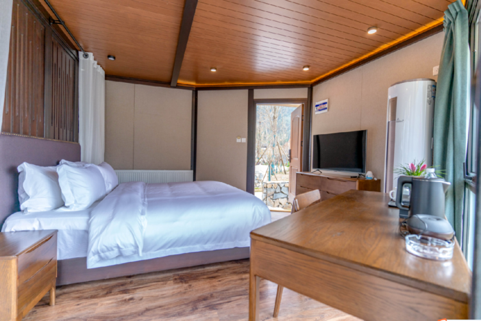 客房错落有致,拥有优美的观山景园景视角,静静躺在简单的线条的院落,精致的茶具,太适合坐在这里,品茶,看书,晒太阳了!