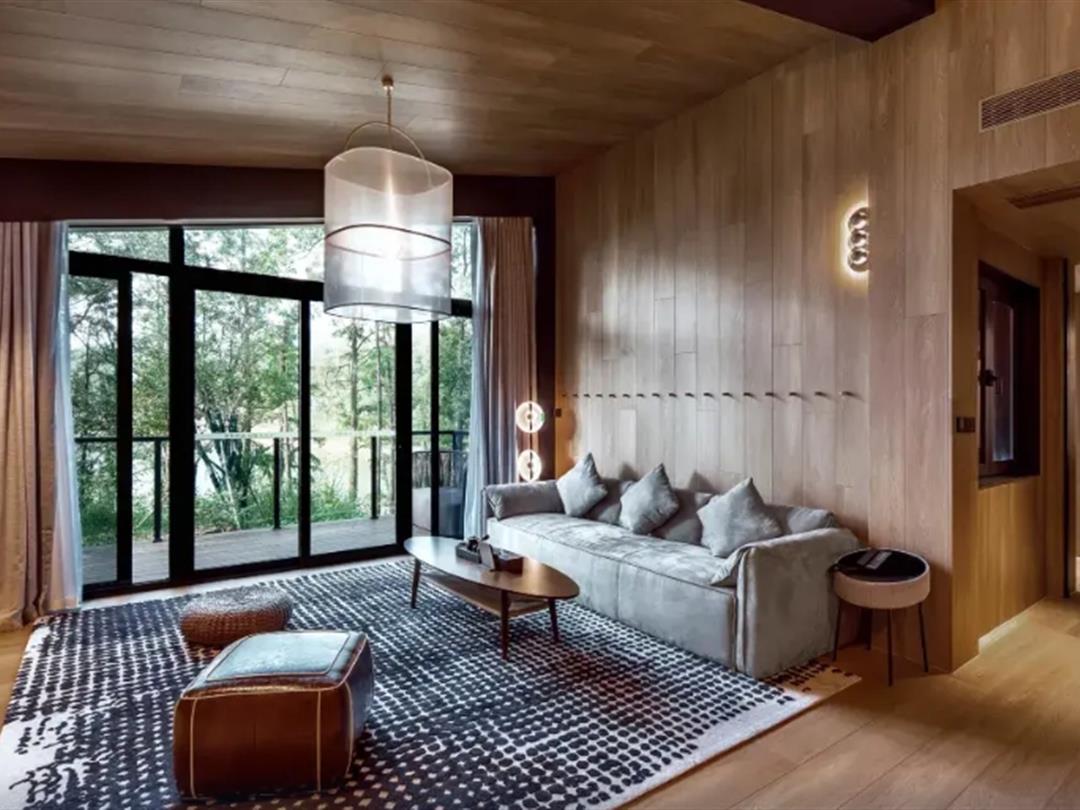 酒店配套丰富,涵盖餐饮、运动、休闲等多维度设施。餐饮方面,「田园食堂」提供农场直供的零公里料理(如松茸煨老鸭煲),「悬茶亭」可体验高淳雨花茶道,「慢食酒吧」供应自酿果酒与有机奶酪拼盘。运动休闲区设有健身房、瑜伽室、湖畔垂钓区及皮划艇等水上项目;
