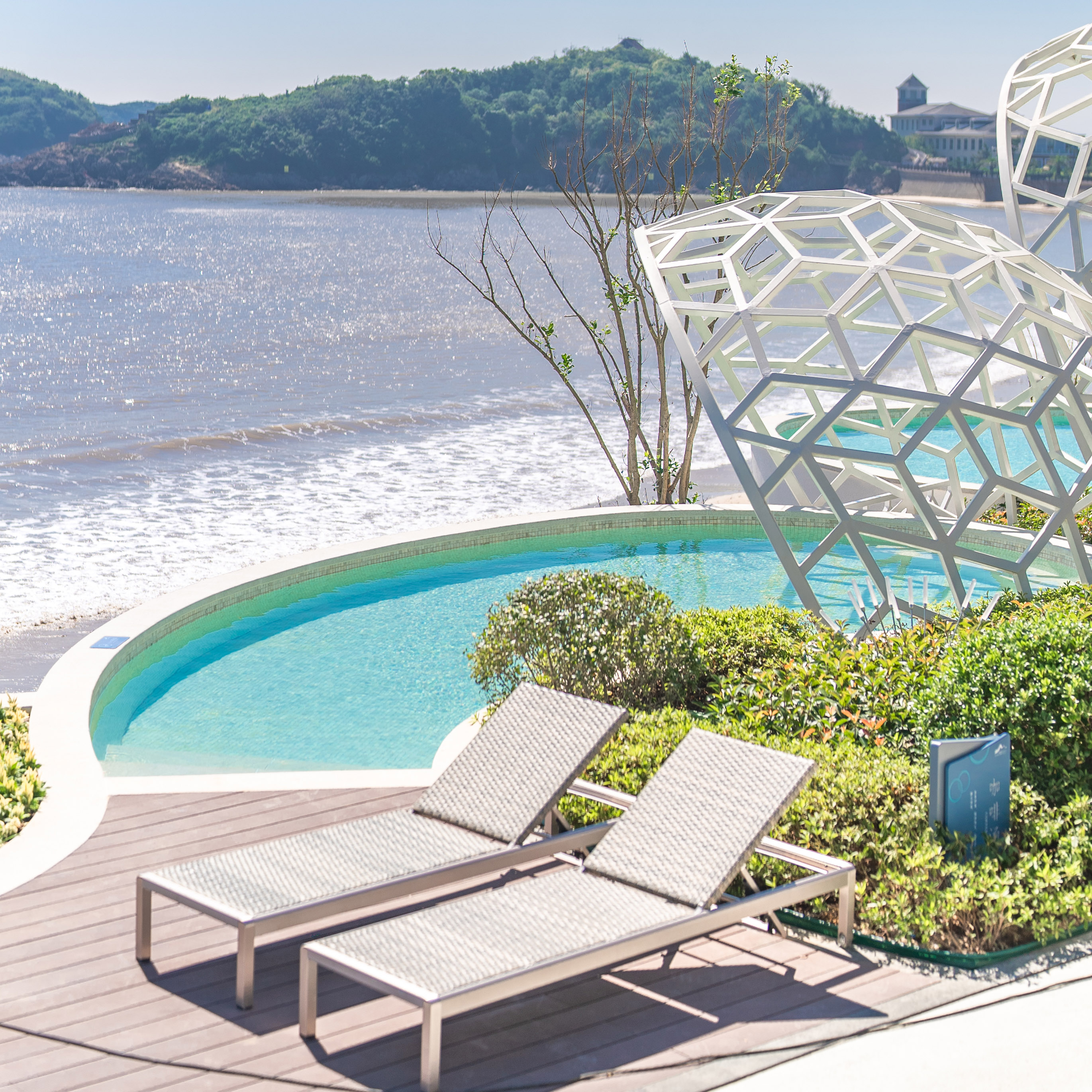 户外泡池面朝大海,海天一色