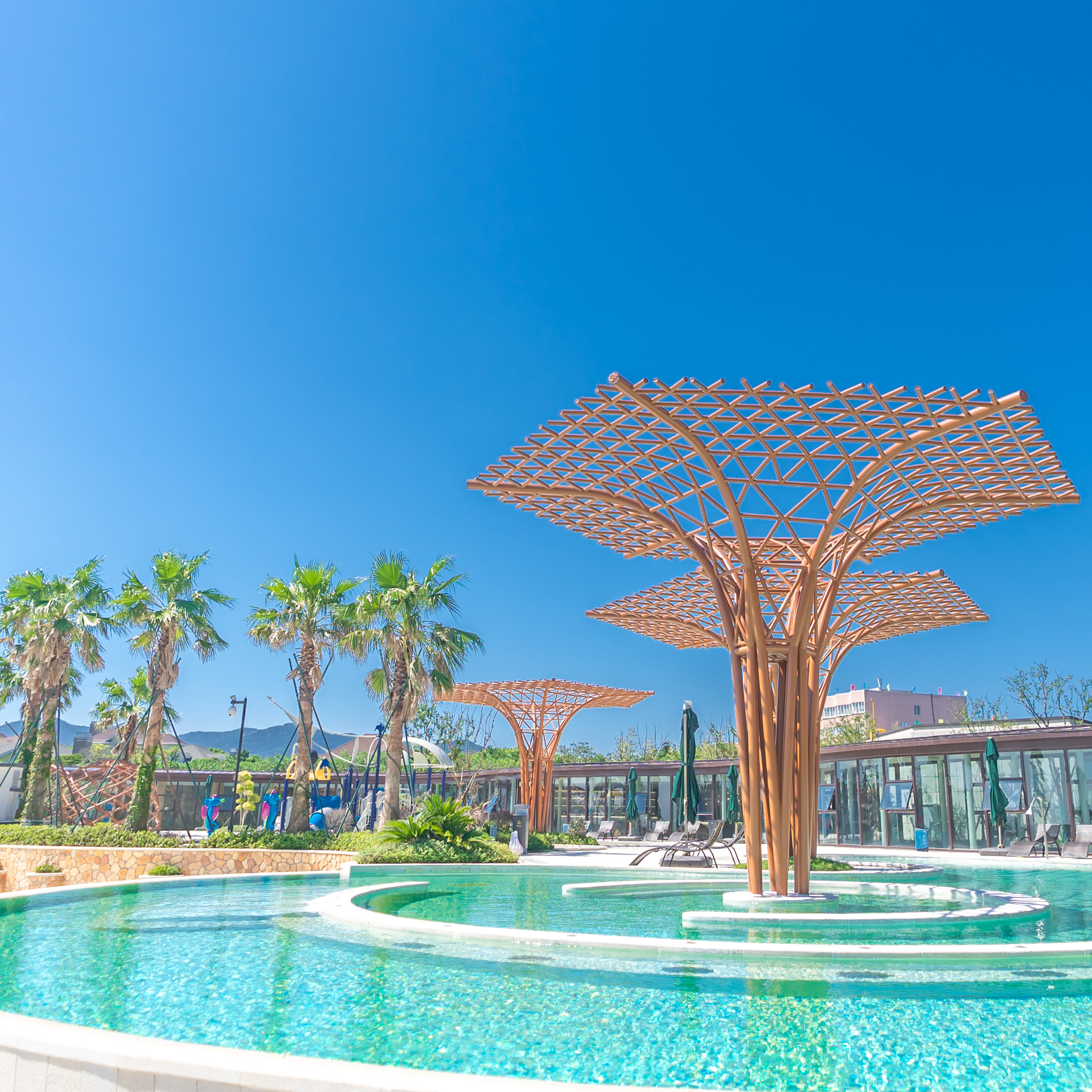 酒店共有3个室内泡池及32个户外泡池