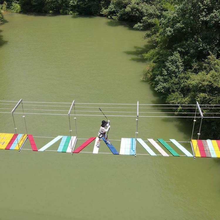 想挑战自己的,也能赶紧来挑战一下,毕竟这座吊桥,可不是那么好过的哦~赶紧@TA来挑战!