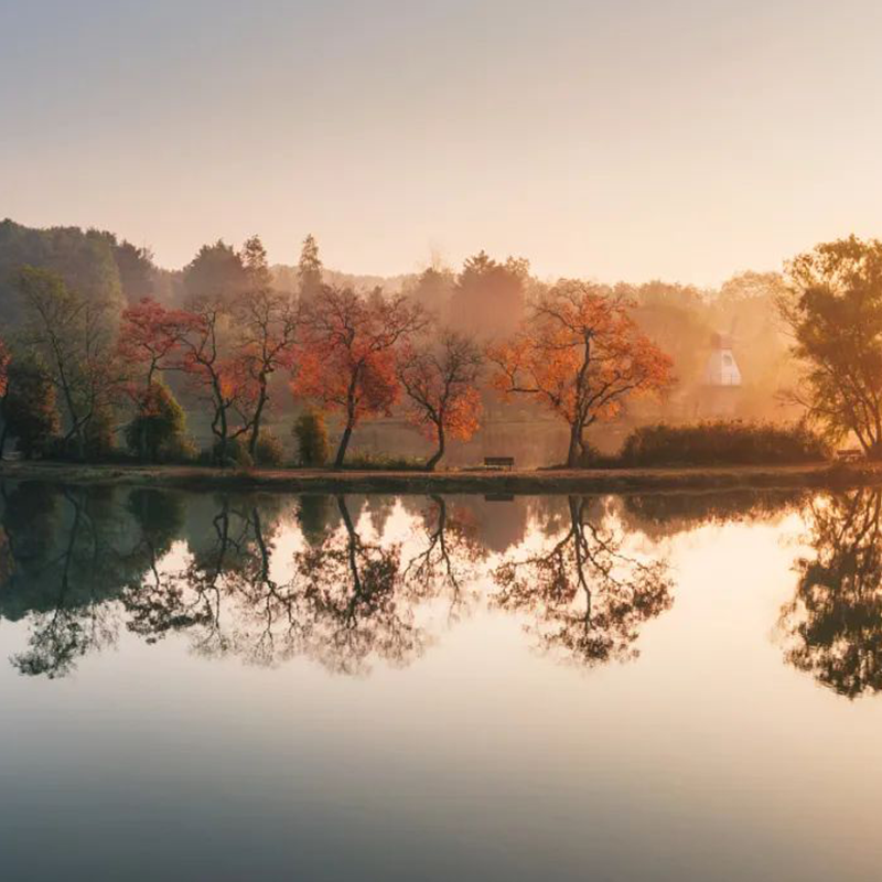 院内被梅雨打湿的秋树,混合着泥土的自然清味;天空衬映下的湖面,像是加上了一层朦胧的滤镜。循着钻进鼻端的桂花香,找个靠窗位置小坐,平心静气的茶水洒入日光,饮进一腹豁然开朗。