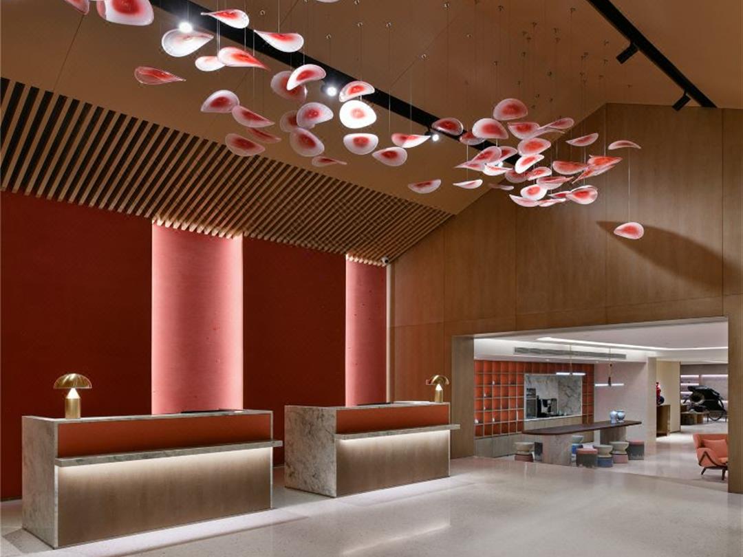 步入大堂,抬眸可见「花落钟山」的壮观设计,足不出户便享秋意盎然之色,所有的美景都浸入眼底。