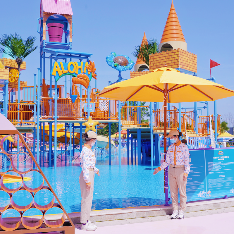 - 5、水世界基于安全理由可以拒绝任何手提包、背包、方便袋、首饰、眼镜、发卡及其他物品被带进设备游玩区域,请自行妥善存放;游客禁止携带手机、项链、戒指、耳环、耳钉等金属饰品及尖锐物品进入滑道类设施参玩,且为保持水质清洁,园内游玩项目须穿着泳装、拖鞋/涉水鞋进入园区体验,游客可自备泳衣、泳裤、毛巾、拖鞋、浴巾及洗漱用品,也可在园区内购买。