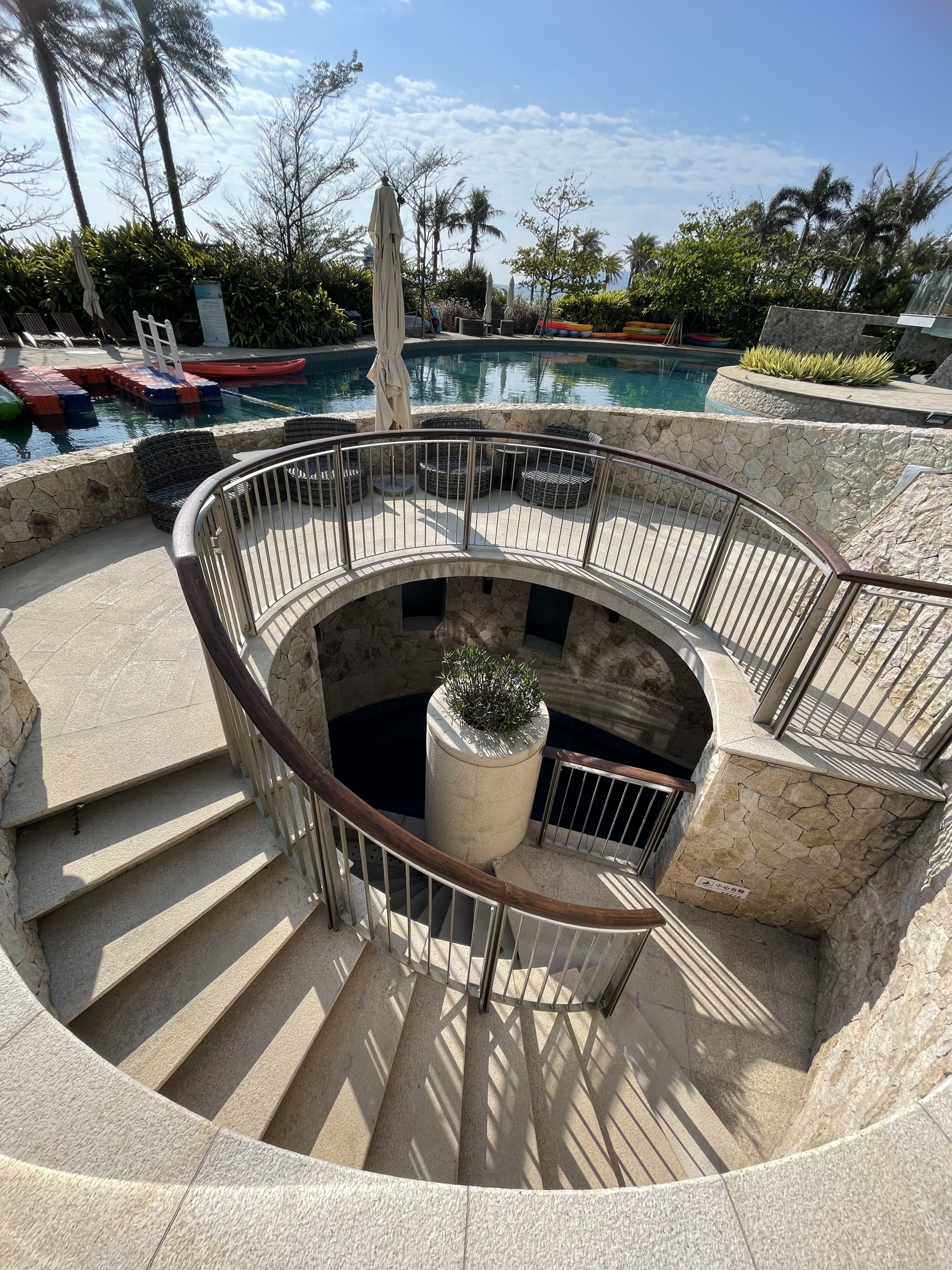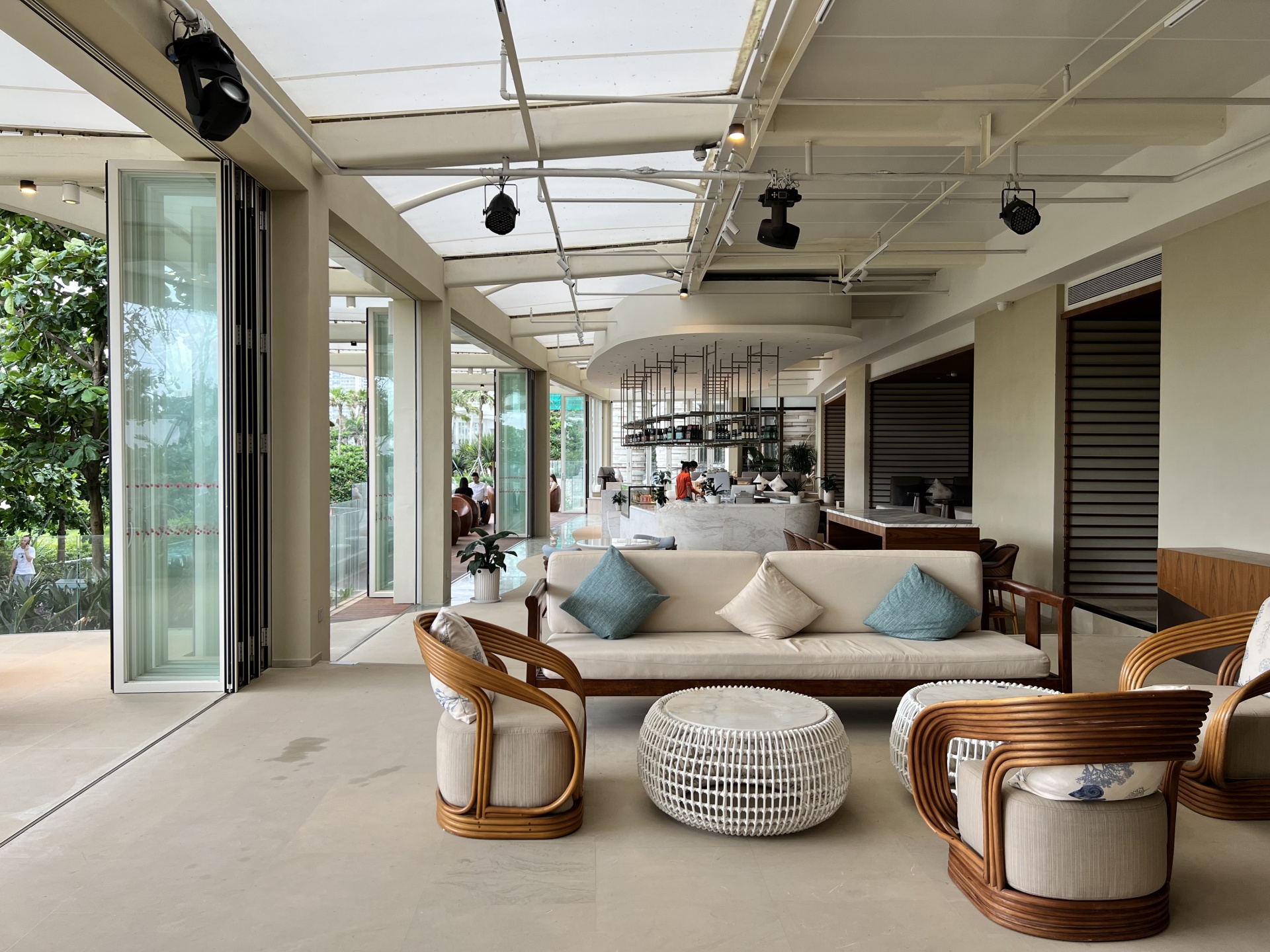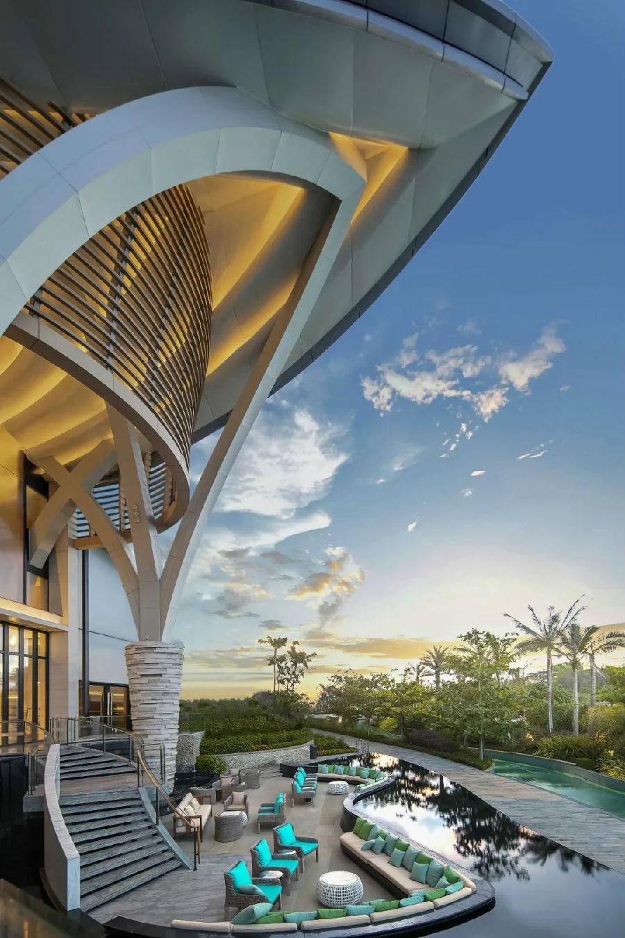 穿过酒店大堂,寻着海浪的声音,拾级而下,到达露台 ,可随处体验到大海的波澜及触动心灵的海浪声。开阔的视野,无限向海延伸 ,形成了这独特的亲海露台,让人栖身户外 ,感受大自然带来的愉悦感。