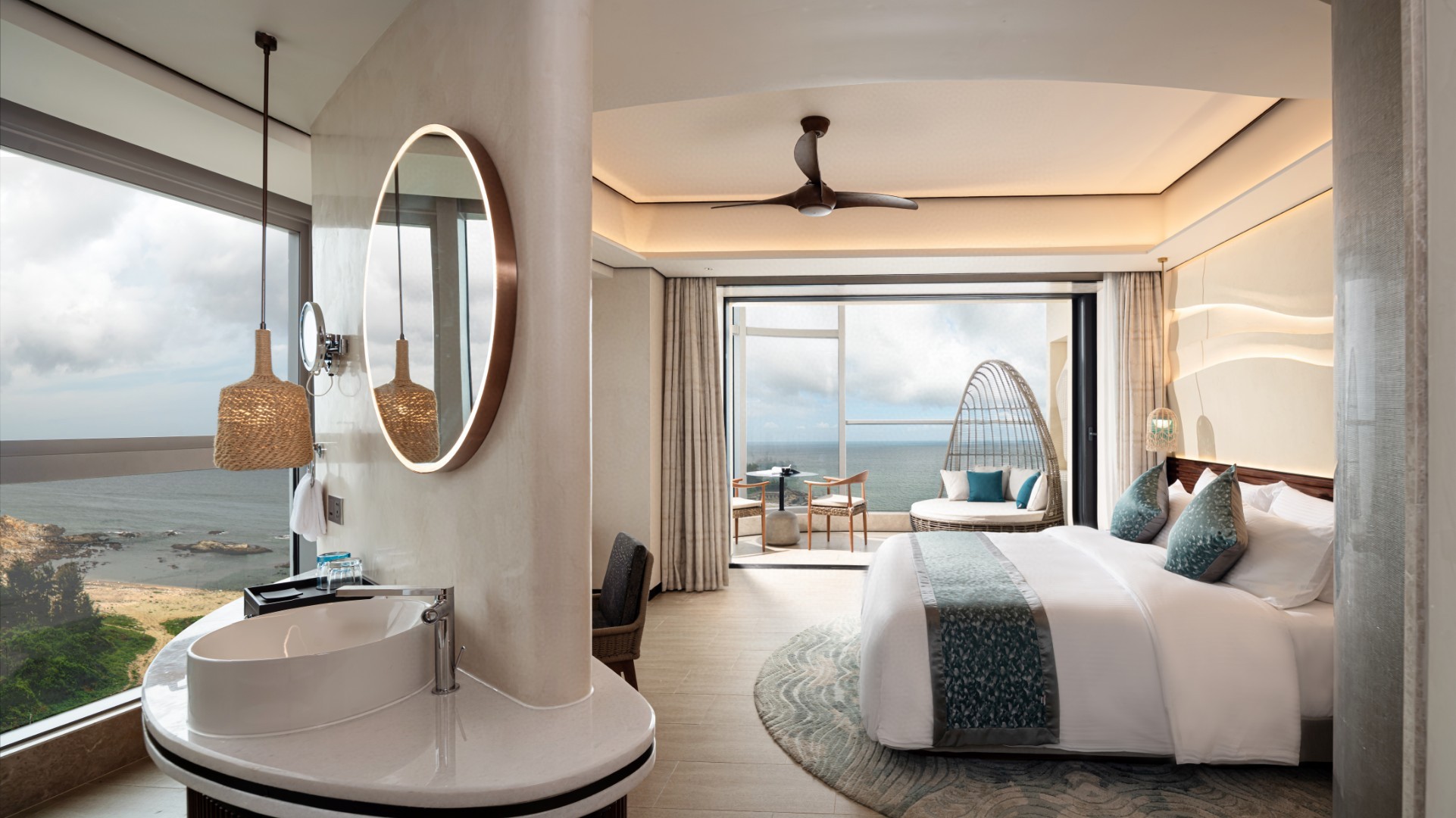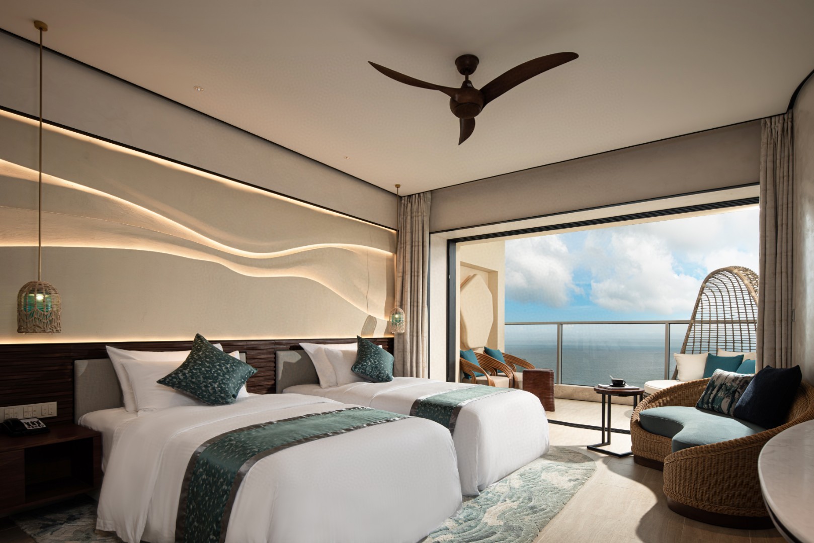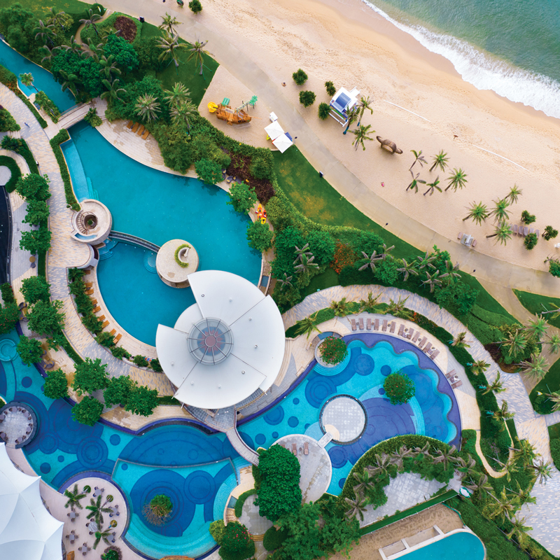 首栋投入运营的【海的银沙】,413间客房和套房,包括正海景客房、全海景套房 、亲子主题套房、萌宠友好客房、空中别墅,为顾客提供全时多维度的新度假生活方式。