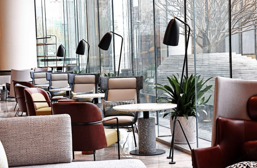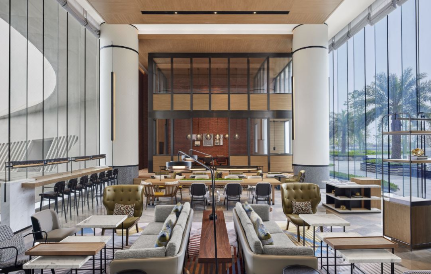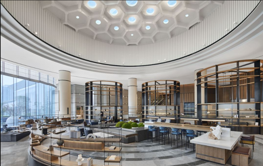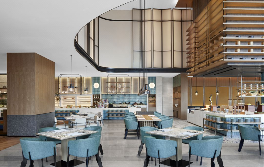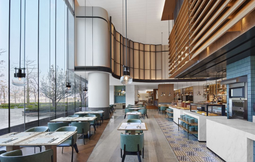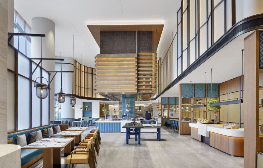 肇庆喜来登酒店融合了诸多喜来登品牌焕新的标志性元素,包括共享长桌(Community Table)。这一专门打造的工作空间让宾客沉浸于整个空间的活力氛围中,工作室(The studio)电话亭(The Booths)巧妙地分布于大堂,宾客可在相对独立的环境中与亲朋和同事畅快交流