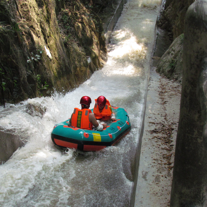 在漂流下坡过程中,就算有水打到脸上,也不要松开您的双手扶手去擦脸上的水,否则很危险很容易翻船。在过隧道时,坐稳扶好,禁止站起来或离开橡皮艇;